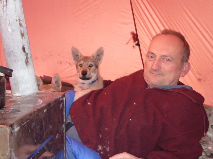 そしてその後、さらに高地、まだ残雪が6mもある標高2000メートルの野営地に子犬を引き取りに行き、彼らの住む環境を理解するために2泊すること。『野営地』とは、本当に標高2000メートルの酷寒の地にアメリカン・インディアンのテントを張ってあるだけ。中は小型ストーブが一個。