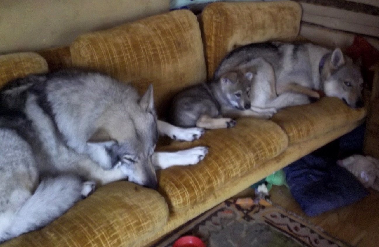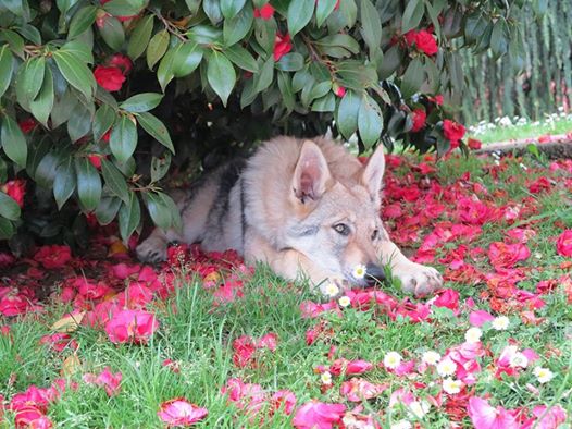 原始人は期待半分で当てずっぽうにいったのですが、実はノルウェイ縦断の際について行ったオオカミたちは亡くなっているものの、現在、その血を引くオス(母親が前述のオオカミの妹)チェコスロバキアン・ウルフの間に子供が生まれる予定だというのです。(野生のオオカミから3代目なら法的にも一般家庭で飼うことができます。)