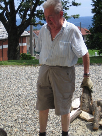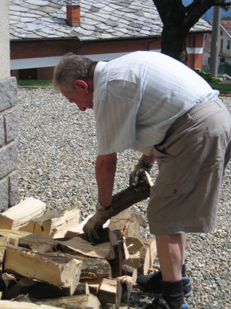 薪積みのプロ、パピンも年齢もあり、足腰が以前のようにはいかないので、一度にこの量をこなすのは大変。